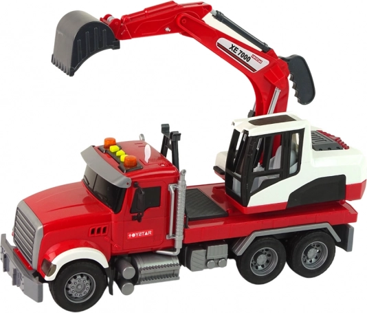 Il camion offre dettagli fedeli come porte, finestre, ruote e specchietti. Grazie alla trazione a frizione i veicoli si spingono facilmente e scorrono su diverse superfici. Il gioco favorisce la creatività, il roleplay di autista e operatore dell’escavatore e insegna il lavoro in cantiere.