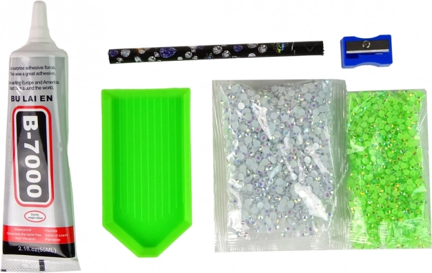 Il set contiene tutti gli strumenti necessari e cristalli per creare le proprie opere d'arte a diamante.