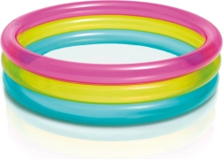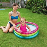 La piscina gonfiabile per bambini INTEX Rainbow è colorata e pratica per le giornate estive. Grazie ai tre anelli trasparenti è stabile e confortevole, mentre le dimensioni compatte 86 × 25 cm si adattano alla maggior parte di giardini, terrazze e balconi. La capacità di 68 litri con altezza dell’acqua consigliata di 17 cm garantisce una superficie d’acqua sicura e bassa per i più piccoli.