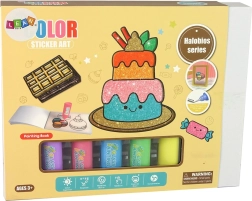 Scopri il mondo creativo con il nostro set senza pari che include adesivi tematici vari che ricordano torte deliziose, macarons e cioccolatini. I bambini possono colorare e creare secondo la propria fantasia. Dettagli e colori sono a vostra scelta, con gli 8 colori e glitter allegati, darete alle decorazioni su vetro una splendida lucentezza.