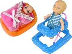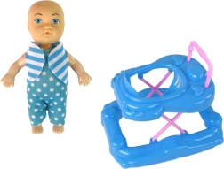 Parte di questo set è anche un'altra bambola - un piccolo ragazzo vestito in abiti bianco-blu con occhi azzurri, che aggiunge varietà all'esperienza di gioco. Vari accessori come un pettine, una pentola, un ciuccio, un biberon e un deambulatore completano il pacchetto per un gioco completo e coinvolgente.