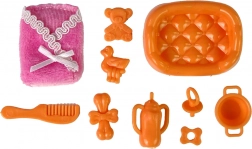 Il set include molti accessori, tra cui una spazzola, un ciuccio, un biberon e altri, che permettono ai bambini di prendersi cura delle bambole in modo giocoso.