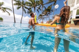 Nella confezione trovi il telaio galleggiante, la rete, il pallone da pallavolo gonfiabile e una toppa di riparazione: ti basta gonfiare e giocare.