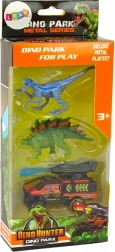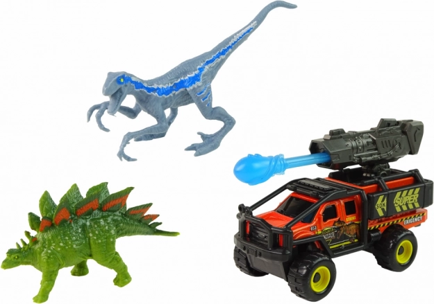 - 2 dinosauri (velociraptor, stegosauro), veicolo fuoristrada con lanciarazzi, confezione originale