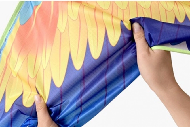 Questo aquilone di grande formato a forma di uccello esotico colpisce per i colori vivaci e i lunghi nastri che creano una scia scenografica nel cielo. Realizzato in nylon resistente e leggero, affronta le normali condizioni meteorologiche e, grazie all’ampia apertura alare, offre un volo stabile e fluido.
