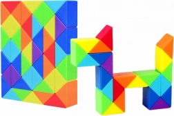Vi presentiamo il cubo magico a serpente, un giocattolo insolito sotto molti aspetti. Il cubo è composto da numerosi blocchi triangolari e consente ai bambini infinite possibilità di creare le costruzioni più diverse. Li introduce nel mondo affascinante dell’edilizia creativa, sviluppando pensiero creativo e manualità.