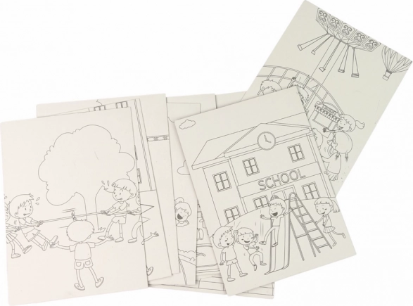 Questo set magico porta ai bambini la gioia del creare e dell’imparare. Ognuna delle 9 immagini si può grattare delicatamente con il bastoncino di legno incluso e sotto la superficie appariranno allegre e vivaci scenette scolastiche. Attività ideale a casa, in viaggio e all’asilo.
