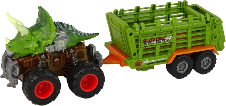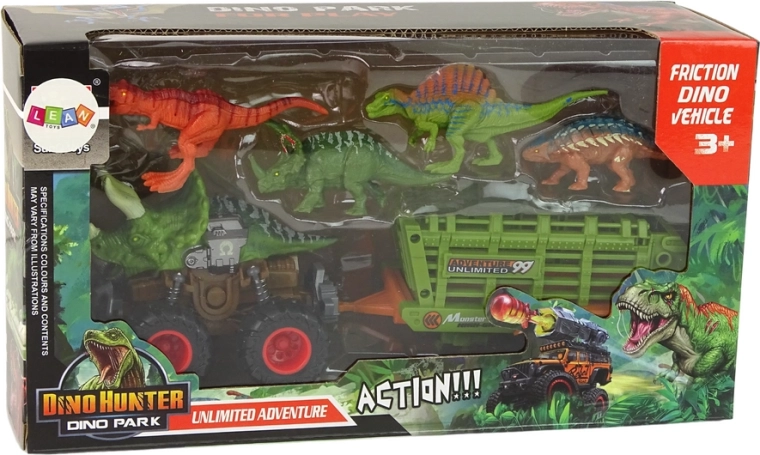 Uno degli elementi straordinari di questo veicolo è il suo movimento a frizione. Basta tirare indietro il veicolo e rilasciarlo per farlo avanzare. Il rimorchio verde può trasportare quattro diversi dinosauri, ognuno unico per specie, forma e colori, permettendo ai bambini di creare diversi scenari di gioco.