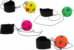 Pallina divertente e resistente in PU con diametro di 6 cm, fissata a un elastico con bracciale a strappo. Ideale per allenare la coordinazione e per un divertimento attivo. Disponibile in 4 colori – giallo, verde, rosa e arancione. Il dolce motivo a cuoricini e il pratico fissaggio assicurano che la pallina torni sempre in mano. Certificazione CE, conforme alla EN71, adatta ai bambini dai 3 anni.