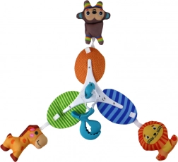 La giostra su clip con animali sospesi è un accessorio adorabile e pratico per l'attrezzatura dei bambini. Questo accessorio morbido e sicuro offre ai bambini tanto divertimento e stimolazione.