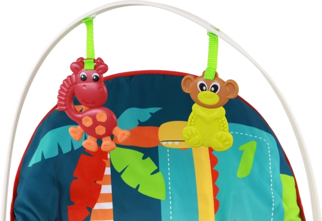 La sdraietta infantile 2-in-1 è ideale per varie attività con dimensioni di 65 cm x 50 cm x 42 cm. Include un arco giochi rimovibile con giocattoli adorabili in plastica di alta qualità unita a gomma, come una scimmietta e una giraffa, che stimolano brillantemente i sensi del tuo bambino. Sul tessuto della sdraietta ci sono anche dinosauri allegri che intrattengono il bambino.