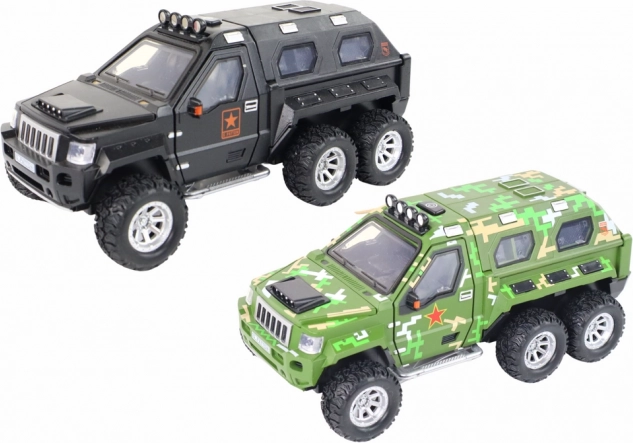 Un fuoristrada realistico per piccoli avventurieri offre cannone estraibile, effetti luminosi e sonori e meccanismo a frizione (a inerzia) per una guida dinamica. Grazie alle ruote in gomma si muove con fluidità su diverse superfici, è realizzato in plastica di qualità ed è disponibile in 3 colori (nero, giallo, mimetico). Alimentazione 3× AAA (non incluse). Adatto dai 3 anni. Dimensioni 18 × 7 × 9,5 cm.