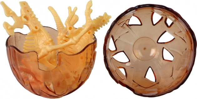 In ogni uovo c’è uno scheletro di dinosauro in plastica gialla da montare facilmente – divertimento e apprendimento in uno.