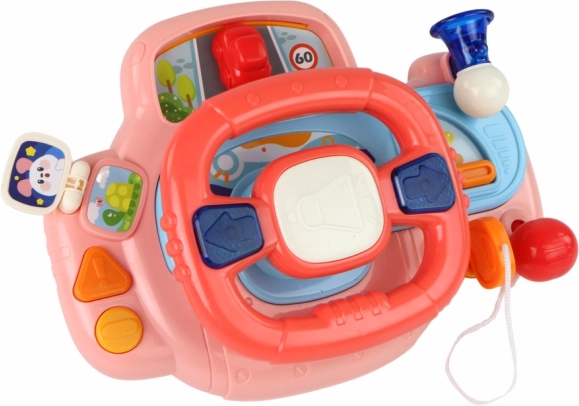 Il volante interattivo di colore rosa è un giocattolo che offre ai bambini non solo divertimento, ma anche apprendimento interattivo e lo sviluppo della coordinazione motoria e delle abilità sensoriali.