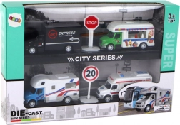 Il set include un camion nero, un furgone dei gelati su ruote, un camper pronto per l’avventura e un’ambulanza per inscenare emozionanti salvataggi. Ogni veicolo è riprodotto con precisione in scala 1:87, per un aspetto realistico e un fascino unico.