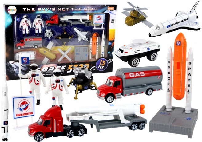Parti per una missione avventurosa nello spazio con un set da 15 pezzi per il gioco creativo. Include 2 astronauti, un razzo pronto al lancio, un veicolo spaziale (rover), un satellite e una navicella spaziale. Regalo ideale per piccoli esploratori, conforme agli standard di sicurezza CE e EN71 e adatto ai bambini da 3 anni.