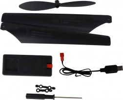 L'elicottero è dotato di luci LED bicolori su entrambi i lati, modificabili tramite radiocomando, che ne aumentano l'effetto scenico. Nella parte inferiore della fusoliera è presente una luce che aiuta la visibilità al buio e consente di vedere ciò che si trova davanti all'elicottero. L'apertura massima dei rotori è fino a 39 cm, garantendo una forza di decollo notevole.
