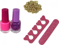 Due smalti in colori vivaci, separatore per le dita e limetta creano un mini salone per piccole vanitose. Decorare le unghie è facile e divertente in ogni momento.