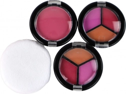 La palette di ombretti in tonalità rosa, viola e blu, arricchita da glitter dorati e argento, farà felice ogni piccola stylist. Due rossetti e le palette contour completano un make-up giocoso.