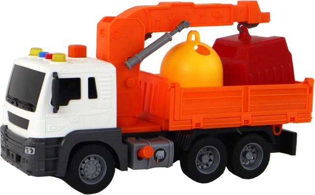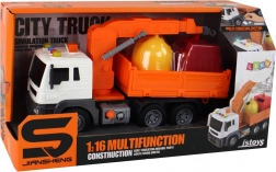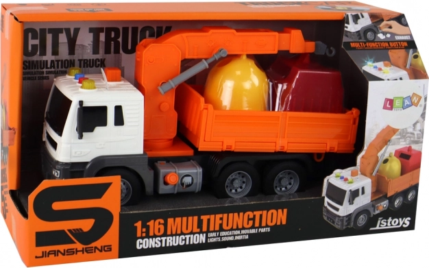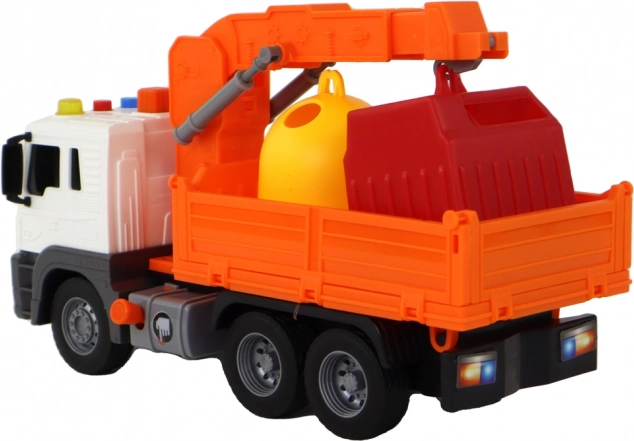 Camion dei rifiuti con gru, trazione a frizione, arancione 1:16