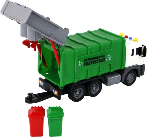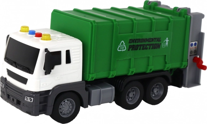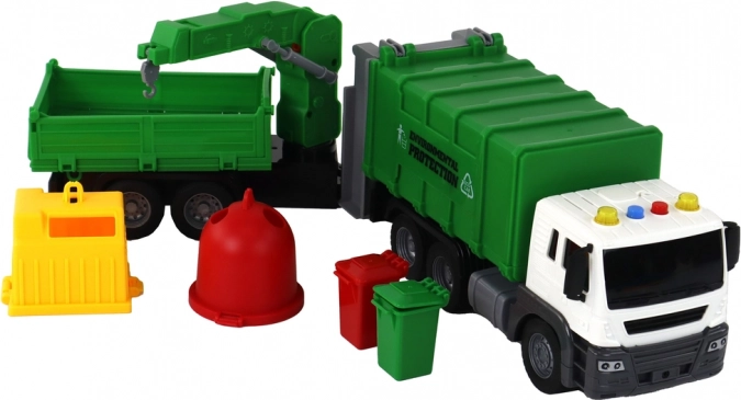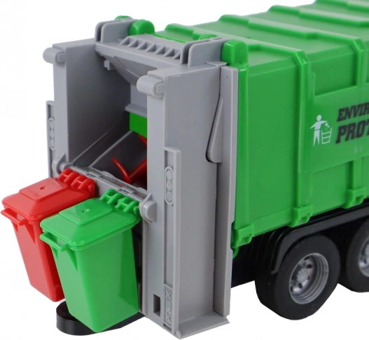 Camion della spazzatura con gru a trazione d’attrito verde 1:16