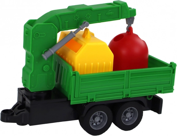 Un’altra caratteristica interessante è il rimorchio con gru. Il braccio della gru si solleva, introducendo un elemento di interazione e creatività nel gioco. Il bambino può sollevare e abbassare i container e mettere in scena situazioni di raccolta e selezione dei rifiuti.