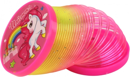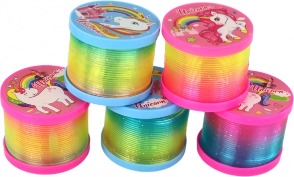 Divertente molla arcobaleno con motivo unicorni e LED integrato per un effetto luminoso magico. Grazie ai piattelli alle estremità non si attorciglia, brilla perfettamente al buio e offre tanto divertimento ai bambini dai 3 anni in su. Certificazione CE e norma EN71 per un gioco sicuro.