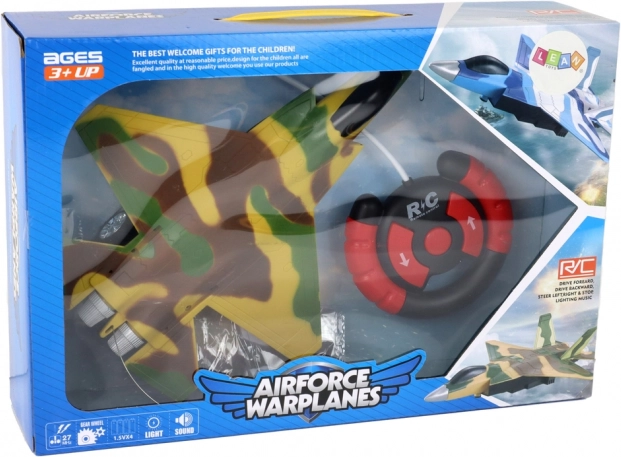 L'aereo RC con mimetizzazione militare offre un aspetto autentico grazie alla combinazione di colori verde, giallo e marrone. Include un controllo remoto che assicura il pieno controllo sui movimenti dell'aereo e consente manovre fluide avanti e indietro. Grazie alle ruote rotanti, puoi dirigere l'aereo a destra e sinistra.