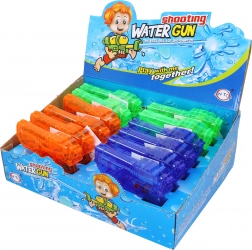 Pistola ad acqua alla moda di 15 cm, ideale per rinfrescarsi durante le calde giornate estive. Disponibile in tre varianti di colore: blu, verde e arancione.