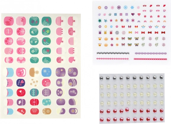 - Dotazione ricca – tip, adesivi, strass e altre decorazioni.