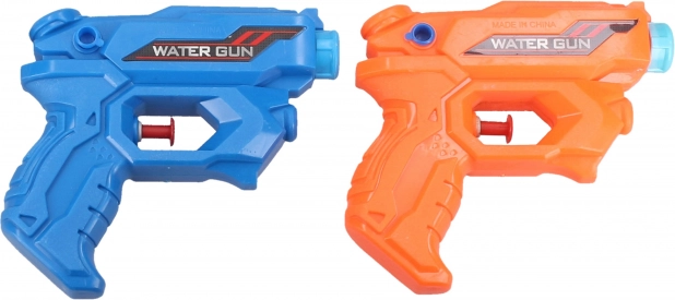 Pistola ad acqua 13 cm con grande serbatoio per ore di divertimento estivo. Disponibile in blu e arancione.