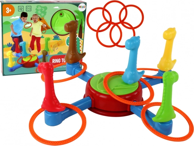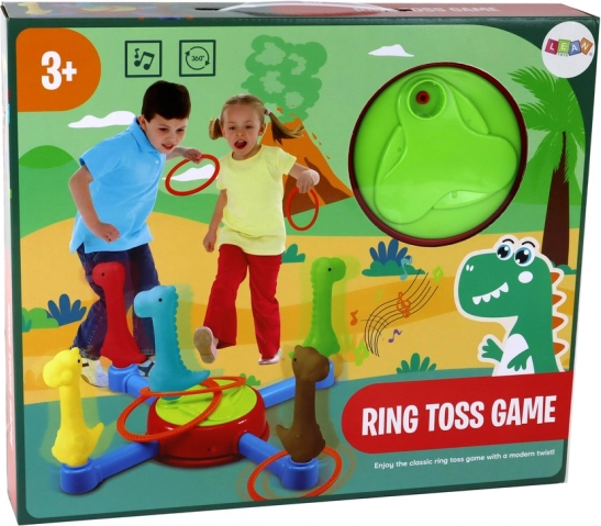 L'elemento di lancio degli anelli allena la precisione e la concentrazione dei bambini. Questo gioco è ideale per i bambini che amano i motivi di dinosauro e vogliono migliorare le loro abilità giocando.