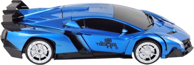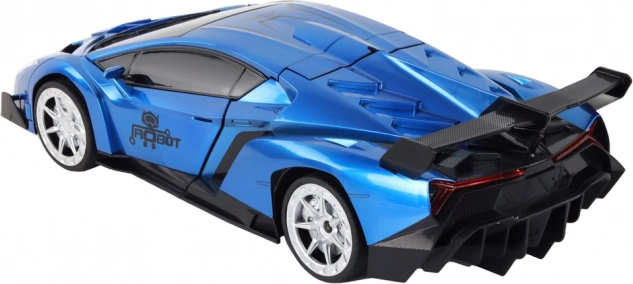 Vi presentiamo una rivoluzionaria auto robotica radiocomandata in scala 1:10 dal raffinato colore blu: unisce l’eccellenza di una sportiva alla sorprendente funzione di trasformazione in robot. Il design curato nei dettagli riflette il carattere realistico di una vera auto sportiva.