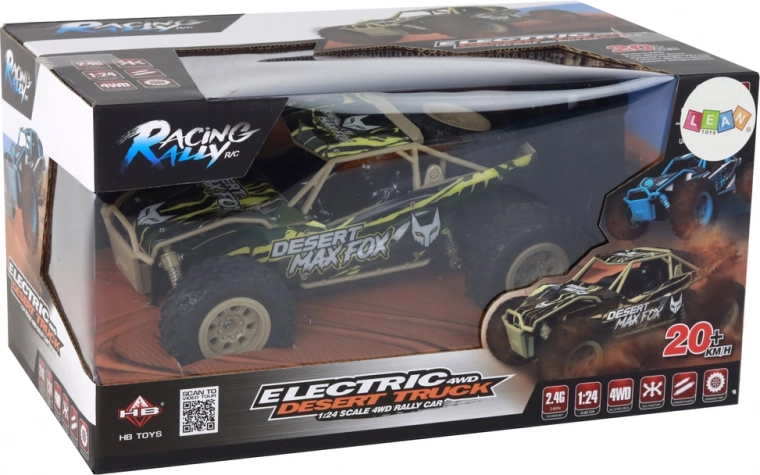 Vi presentiamo un modello di auto fuoristrada telecomandata in scala 1:24 nel dinamico colore marrone-verde. Non è solo un veicolo, è una macchina d’avventura capace di superare vari ostacoli grazie alle ruote in gomma e agli ammortizzatori che garantiscono una guida fluida.