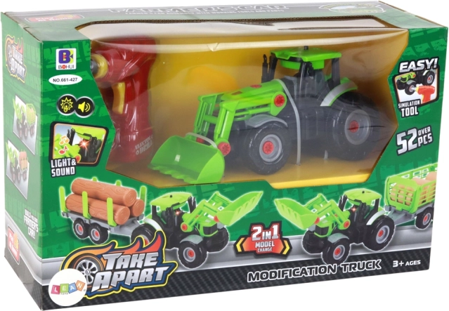 Set divertente ed educativo per piccoli fai-da-te: un trattore con rimorchio che i bambini possono montare e smontare da soli. Include anche un trapano/cacciavite per bambini. Il giocattolo offre suoni realistici del motore ed effetti luminosi, sviluppa motricità fine, creatività e pensiero logico.