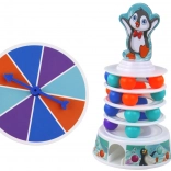 Questa torre tremolante con un simpatico pinguino offre un gioco dinamico e avvincente per tutta la famiglia. Assembla la base, impila la “montagna di ghiaccio”, versa le biglie colorate e posiziona il pinguino in cima. Con la roulette sorteggia il colore e spingi delicatamente all’interno la biglia corrispondente – la struttura è mobile e instabile, quindi richiede fine motricità e un vero duello di nervi.
