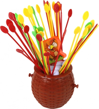 - Preparazione facile: inserisci i bastoncini nel cestino, distribuisci le uova, gira la roulette e gioca.