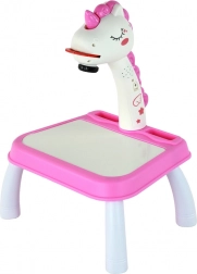 Questo proiettore unicorno rosa trasforma ogni momento in un'avventura creativa. Il bambino può scegliere tra 24 sagome proiettate e ricalcarle con facilità. Grazie alle 4 gambe, il set può essere usato come pratico tavolino oppure come lavagnetta piana per disegnare – ideale per creare a casa o in viaggio.