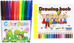 - 12 pennarelli colorati, quaderno da disegno, panno