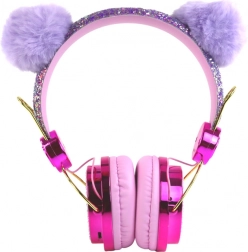 Cuscinetti auricolari rosa morbidi, fascia scintillante e orecchiette peluche viola per il massimo comfort e stile alla moda.