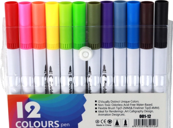 Il set comprende 12 pennarelli bicolori che permettono di esprimere la creatività nel modo più colorato. Che siate artisti professionisti o principianti, i nostri pennarelli soddisferanno le vostre aspettative in termini di qualità e varietà.