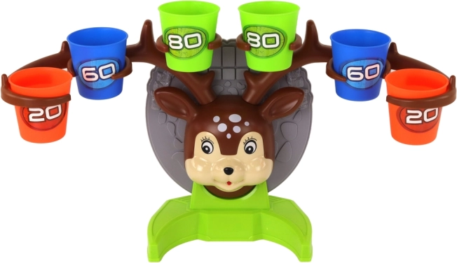 Assembla il tenero cerbiatto, prepara i bicchierini colorati con punteggio e inizia a giocare. L'obiettivo è far rimbalzare la pallina dal tavolo e centrare il bicchierino con il valore più alto possibile. I colori vivaci invogliano al gioco e allo stesso tempo sviluppano precisione, prontezza e motricità fine.