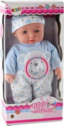 La nostra bambola bebè, vestita con un adorabile pigiamino blu con orsetto, che si chiude dietro con una pratica striscia in velcro, e con un tenero cappellino, è la compagna perfetta per i più piccoli. Questa bambola straordinaria non solo incoraggia il gioco creativo, ma insegna anche cura, responsabilità e rispetto fin dalla più tenera età.