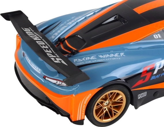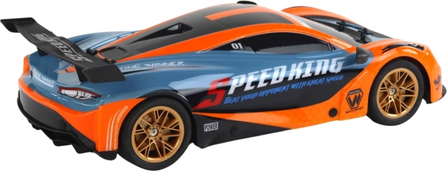 Scopri il divertimento a tutto gas con un’auto RC in scala 1:10 realizzata con precisione. La livrea sportiva arancione e blu con ruote dorate e spoiler posteriore offre un look e prestazioni eccellenti. Grazie alla frequenza 2.4G avrai portata stabile e zero interferenze, così potrai usare più auto contemporaneamente.