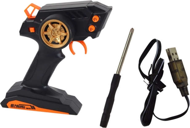 Il moderno trasmettitore a frequenza 2.4G garantisce una connessione stabile senza interferenze e consente di guidare più modelli contemporaneamente. Il radiocomando a grilletto, ergonomico, offre una presa sicura.