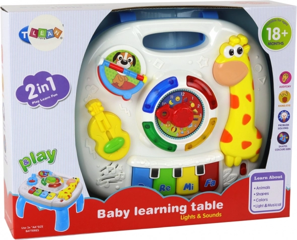 Scoprite il divertente e istruttivo tavolino interattivo 2 in 1 che favorisce lo sviluppo globale del bambino. Offre effetti luminosi e sonori, orologio mobile per imparare a leggere l’ora, un piccolo pianoforte e altri elementi per sviluppare motricità fine, percezione sensoriale e creatività.