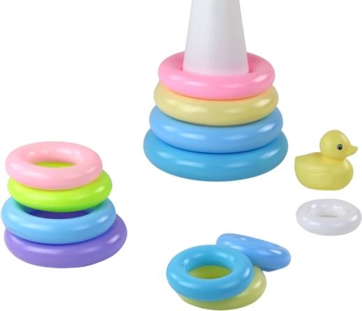 I bambini impilano gli anelli dal più grande al più piccolo e nel frattempo imparano colori, dimensioni e sequenze. Favorisce il pensiero logico e la percezione spaziale.
