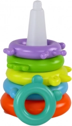 I bambini impilano gli anelli dal più grande al più piccolo, sviluppando in modo naturale la logica, la motricità fine e il riconoscimento dei colori.