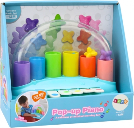 Il pianoforte con stelline a molla in colore blu è un giocattolo straordinario che introduce i più piccoli nel magico mondo della musica e delle luci. Progettato pensando alla sicurezza e allo sviluppo del bambino, questo pianoforte offre non solo suoni, ma anche effetti visivi sotto forma di stelline colorate che saltano in aria a ogni pressione di tasto.