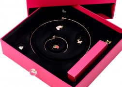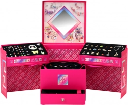 Questo generoso set per creare gioielli in un portagioie rosa (26 × 23 × 23 cm) entusiasmerà ogni bambino che ama creare. All’apertura, le pareti della scatola scorrono rivelando tre grandi ripiani pieni di tesori colorati – dai ciondoli a forma di farfalle, fiorellini e stelline a un’ampia selezione di perline con bellissimi motivi. Al centro trovi un grande cuore con mini perline accuratamente suddivise; in basso un cassetto estraibile con cordini colorati, ciondoli e una collana dorata come base per i tuoi gioielli originali.